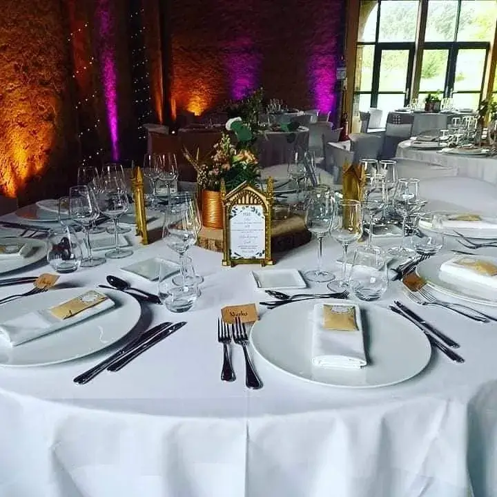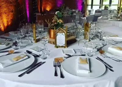 Assiettes, verres et couverts adaptés aux repas d’affaires comme aux réceptions privées. Chaque pièce est préparée avec soin.