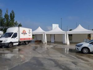 Montage par nos équipes/ lestage par plots bétons/ pose de gouttières d’étanchéité/ démontage